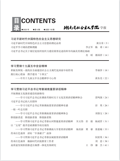 湖南社院学报2020年第6期封面及目录