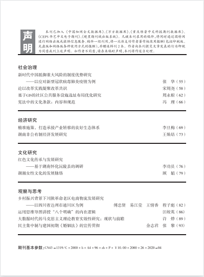 湖南社院学报2020年第1期封面及目录
