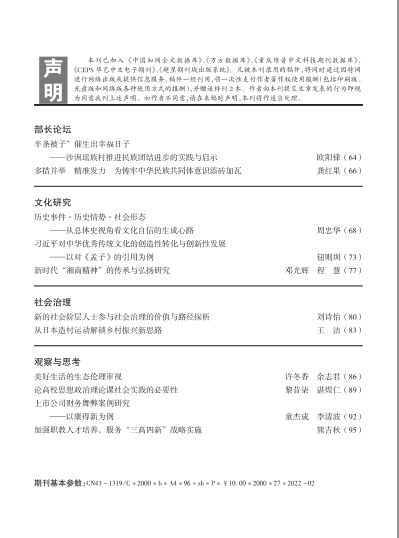 湖南社院学报2022年第1期封面及目录
